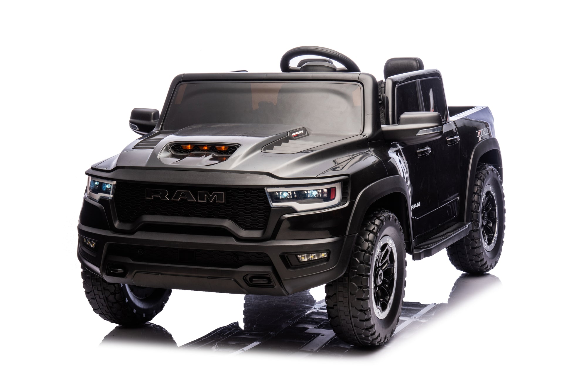 Engineered with 4x4 traction tires and a heavy-duty steel frame, this mini RAM truck tackles uneven terrain effortlessly. The IP54-rated electronics resist dust and light rain, while the 12” cargo bed hauls toys, snacks, or stuffed co-pilots on every journey.