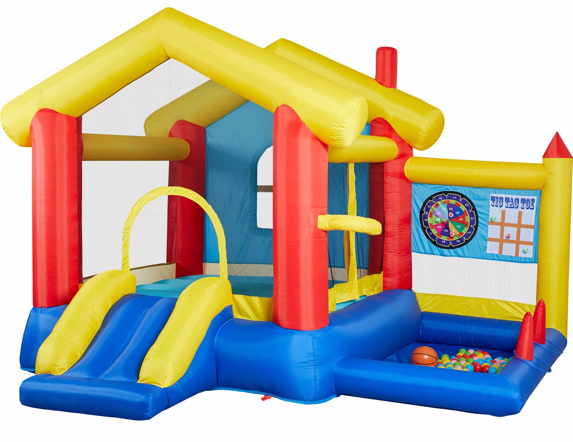 MOMENT AND ENJOY SPORTS: Discover endless fun with our vibrant jumping bounce house! Featuring a ball pit, slide, 50 balls, basketball hoop, and dart target game, it offers more excitement than traditional play. Designed to accommodate three kids, it encourages teamwork and sharing while keeping them active and engaged.