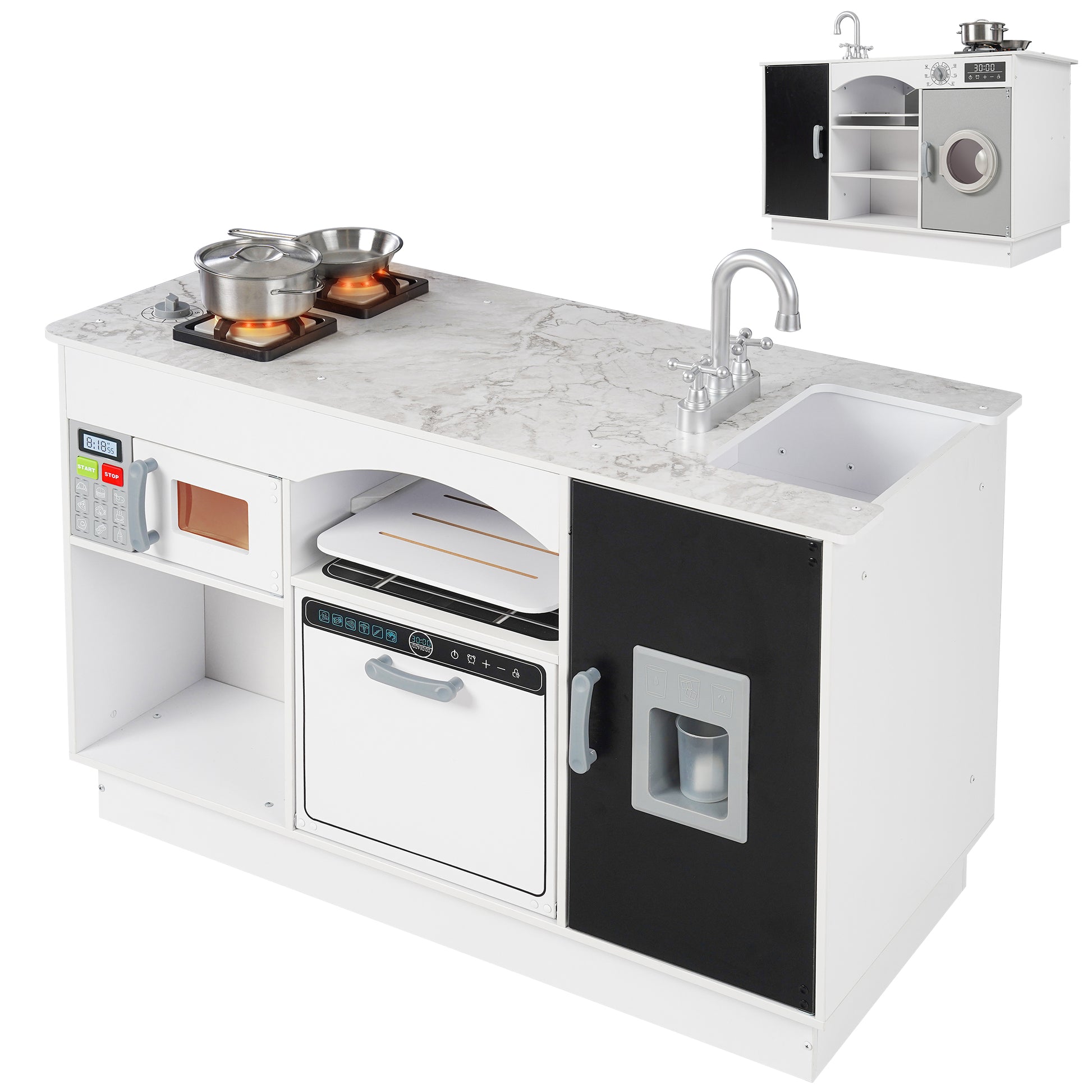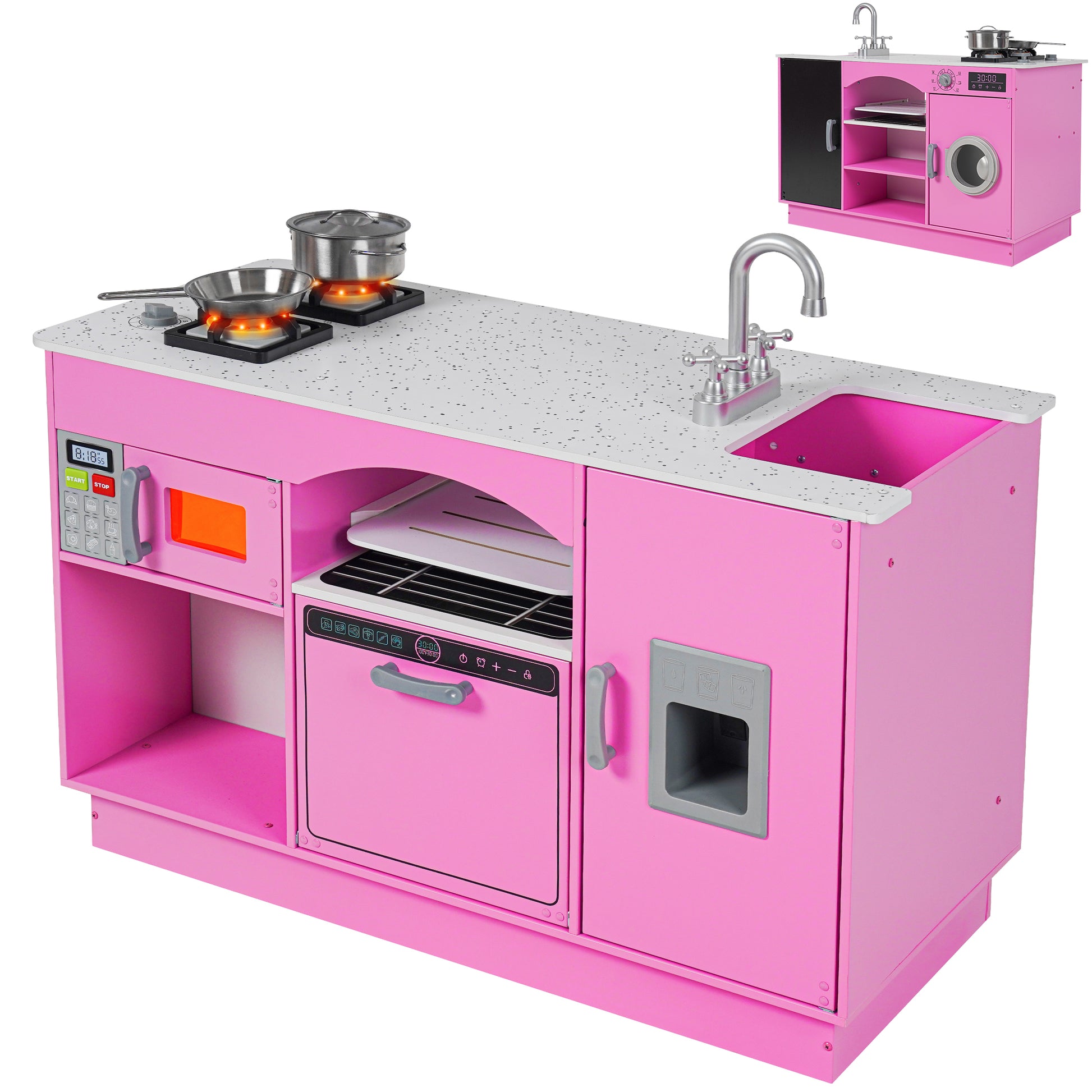 Realistic Lights, Sound & Moving Parts: Washer, fridge+microwave ,doors open/close! (spatula, pots) + sizzle sounds create immersive pretend play for future chefs.