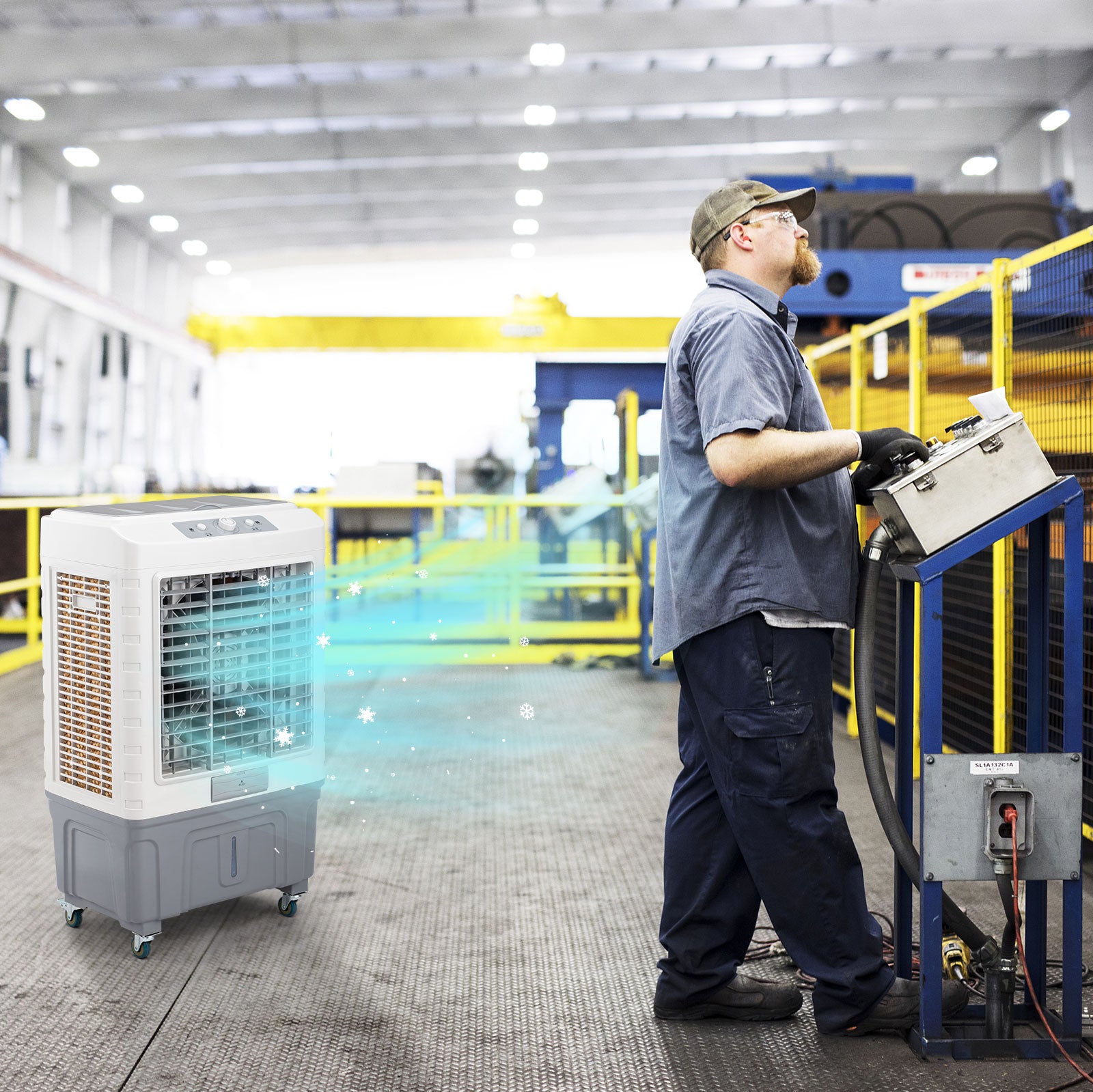 【Remote Control & 360° Swivel Wheels】- All adjustments can be easily made by using the remote control without leaving where you are. There are 4 caster wheels, which are convenient for you to move the swamp cooler in different places. The portable air cooler weighs 13 lbs and has a handle for easy lifting and flexible storage. So this air cooler fan is not limited to one place, you are free to move it to any space when you need cooling, whether it is the backyard, garage, patio, room or more.
