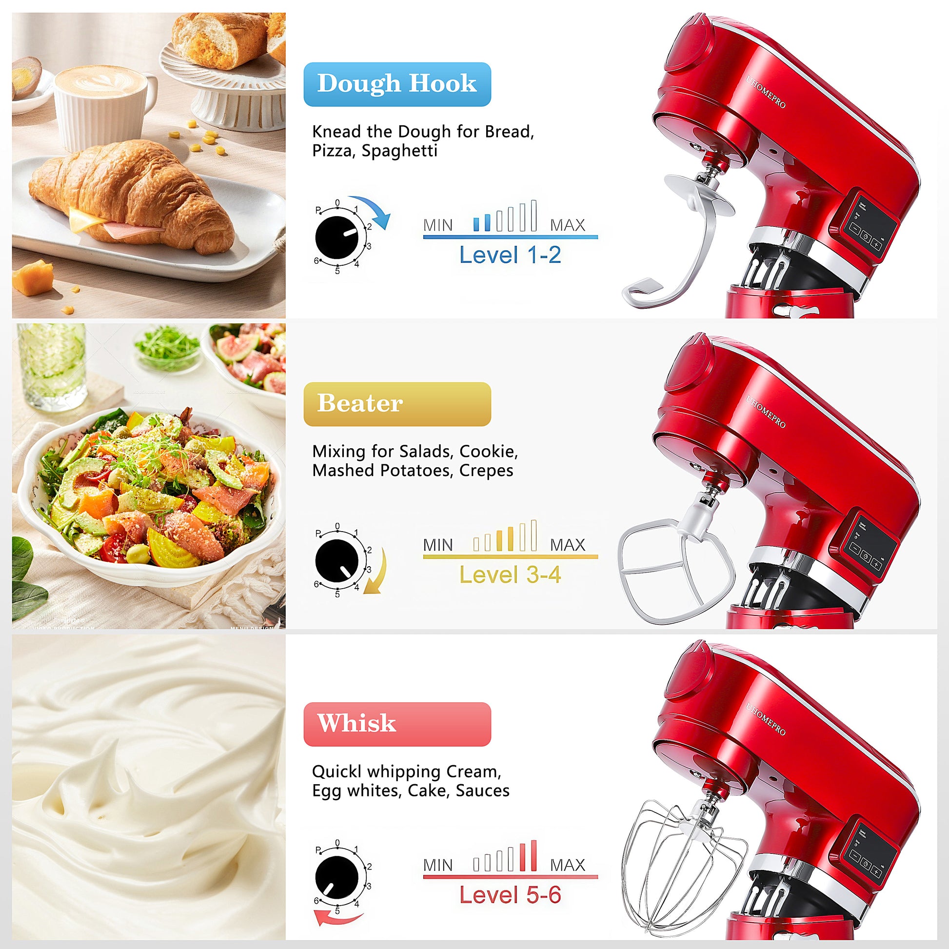 6-SPEED ADJUSTABLE FOOD MIXER - 6-speed controller lets you choose from a slow stir to a fast mix. The powerful mixing action for folding, kneading, mixing, beating, creaming, and whipping, plus lower speeds for stirring and finessing your most delicate concoctions, ensure a perfect and professional mixing effect every time. Definitely one of the best appliances in your kitchen.