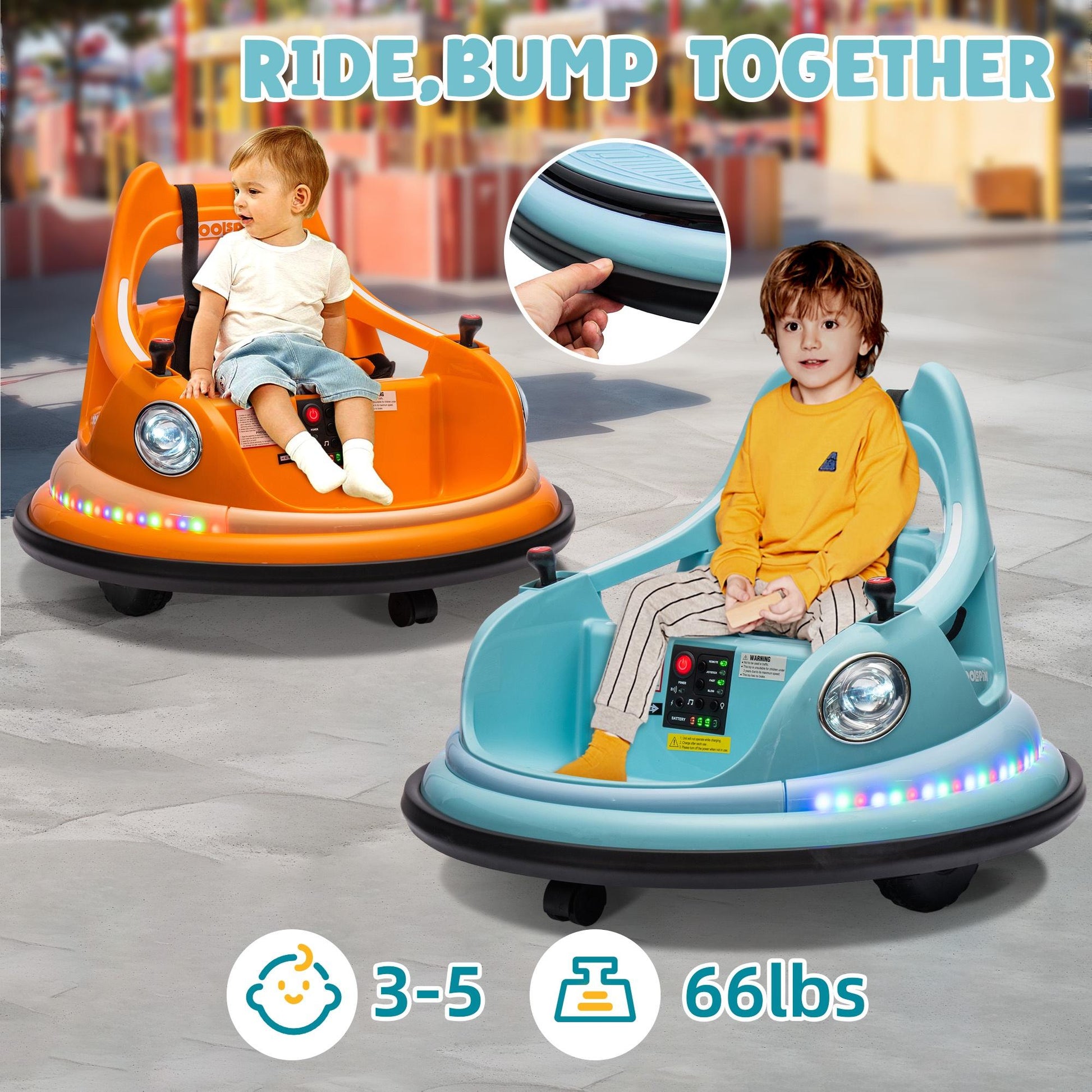 - The car ride is an ideal birthday or Christmas gift for your kids. Choose it as a companion to accompany your children's growth, enhancing their independence and coordination during play and joy. It has Bluetooth music, a battery indicator, two-speed modes, and dazzling lights to add fun to the "bumper around" competition. Designed for 1 rider with a weight limit of up to 66 pounds, it’s a huge hit with kids ages 2-5.