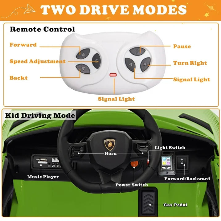 🌟Genuine Lamborghini Style🌟: Treat your little one to the thrill of driving in style with this officially authorized Lamborghini ride-on car. Featuring a sleek double-cut door design, it's a head-turner on any block, making your child the envy of the neighborhood.