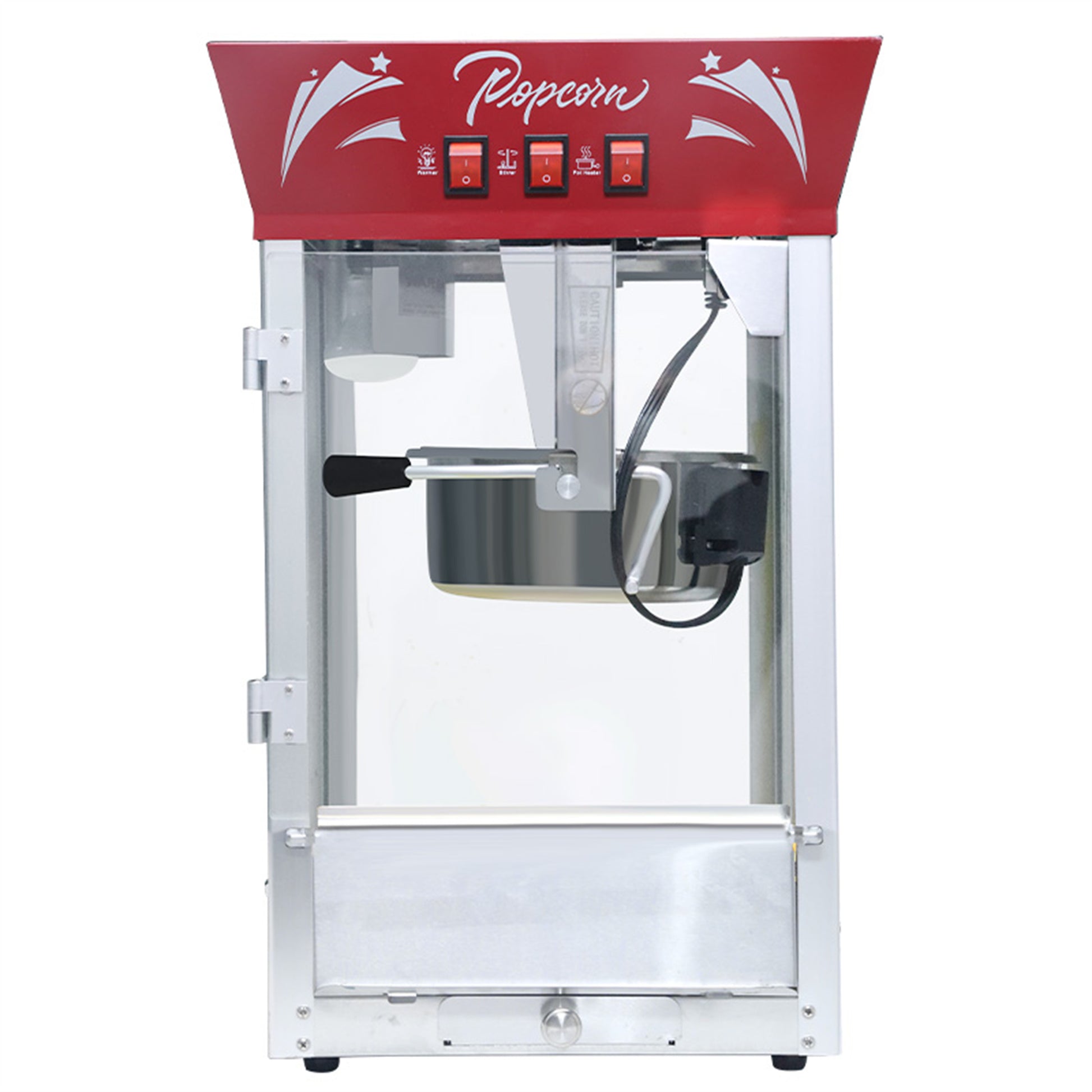 Bring the authentic movie theater experience home with this commercial popcorn machine—a powerhouse popcorn maker machine designed for both home theaters and large events! Built with heavy-duty stainless steel and powder-coated steel, this high-capacity movie theater popcorn machine pops up to 50 cup per batch using its 900W whisper-quiet motor, perfect for birthday parties, school fundraisers, or family movie nights. The tempered safety glass door resists scratches and heat while giving you a front-row view of the popping magic, just like your favorite cinema’s popcorn poppers. Control every step with the easy 3-switch design (heater, stirrer, warmer) and keep popcorn fresh on the built-in warming deck. No more unpopped kernels—the reject tray filters out “old maids” for perfect batches every time! This pop corn machine maker includes stainless steel tools: a 1/2-cup measuring cup, scoop, and spoon, so you’re ready to serve immediately. Compact yet durable, it’s the professional-grade popcorn machine that fits any countertop and withstands daily use. ¡Maquina para hacer palomitas de maiz estilo profesional! this popcorn popper combines safety (meets rigorous ASTM safety glass), convenience, and that irresistible theater-style crunch. Add it to your concession stand, business, or kitchen—it’s more than a pop corn machine; it’s your ticket to fresh, buttery fun!