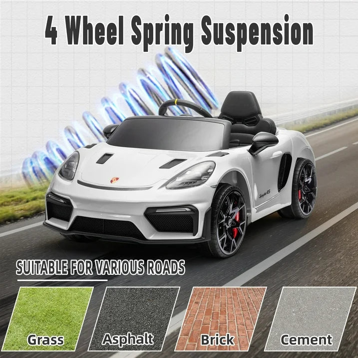 Porsche 718 Kids Ride On Toy, Electric Car for Toddlers with Remote Control, 4 Wheel Suspension, Bluetooth, Music, LED, Safety Belts, Kids Sports Ride on Car for Toddler 3-6 Yrs Boys Girls Gifts