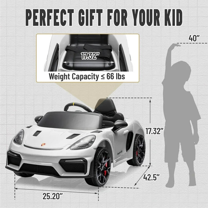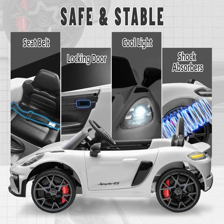- Officially Licensed Porsche 718 Spyder: A true-to-life replica that delivers the style and sophistication of the Porsche 718 Electric Car, offering an authentic driving experience for your child.