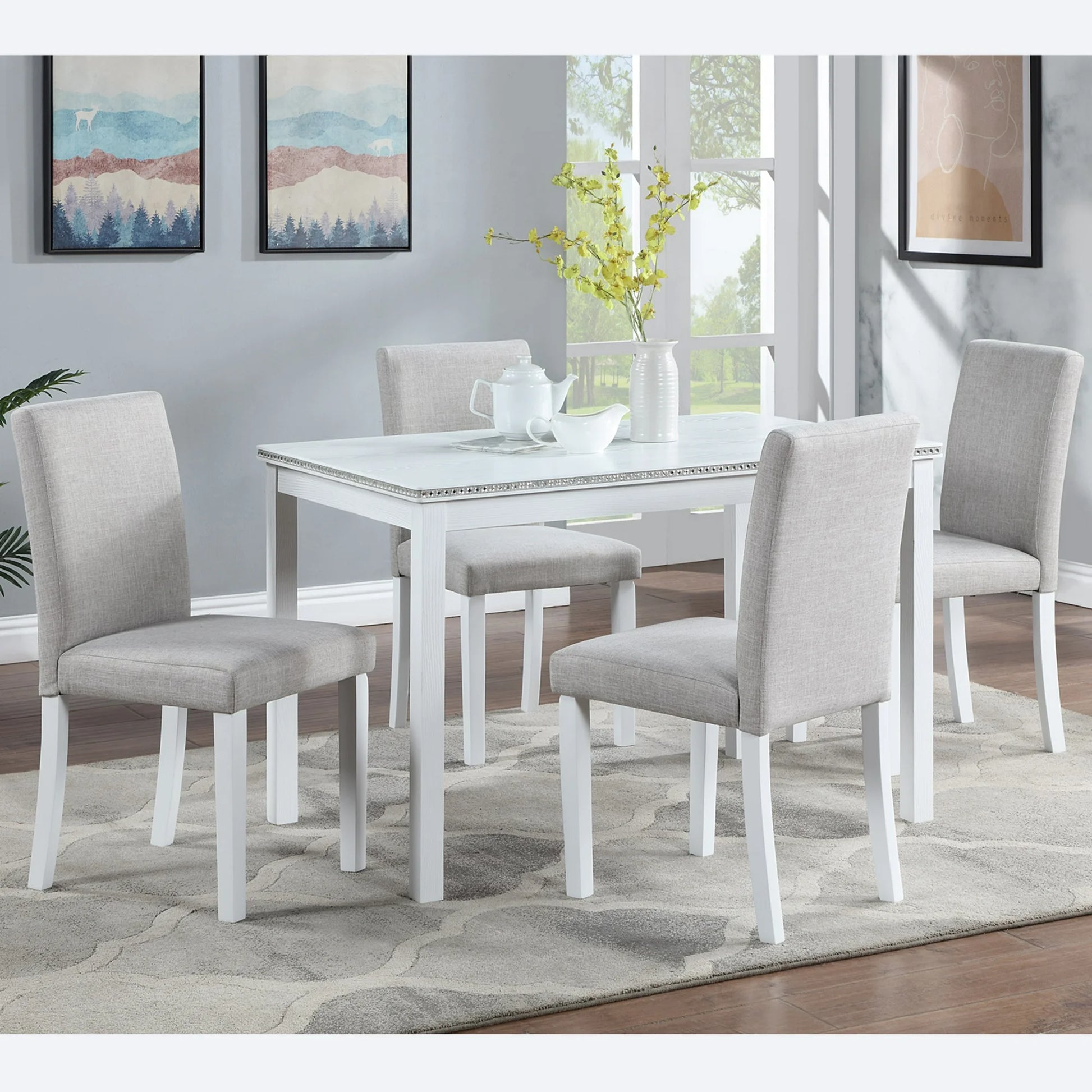 Transform your dining experience with the UHOMEPRO 5-Piece Dining Table Set, designed to bring modern elegance and functionality to your kitchen or dining room. This exquisite set features a sleek rectangular table and four beautifully crafted fabric upholstered chairs, all in a sophisticated white finish that complements any decor. Upgrade your dining area with the UHOMEPRO Dining Table Set for 4, and create a stylish and inviting space for family meals, entertaining guests, or simply enjoying a cup of coffee.