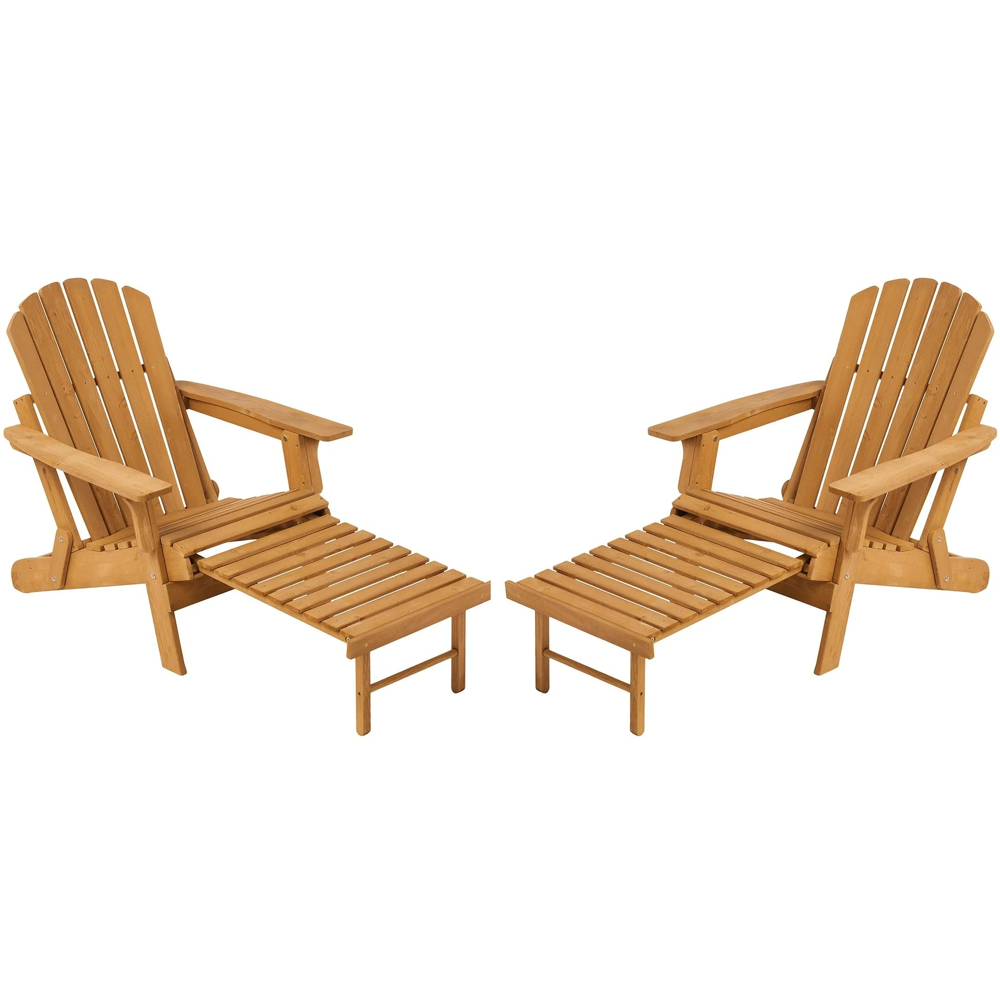 Enhance your outdoor living space with our Folding Adirondack Chair Set of 2, featuring a retractable ottoman for ultimate relaxation. Designed for all-weather durability, these patio lounge chairs are perfect for your garden, backyard, porch, or poolside. Crafted from high-quality wood, these Fire Pit Chairs naturally accent any outdoor setting. With a robust 350lb capacity, these light brown lounge chairs ensure comfort and stability for all. Ideal for enjoying a cozy evening by the fire pit, these Folding Adirondack chairs combine functionality with timeless style, making them a must-have addition to your outdoor furniture collection.