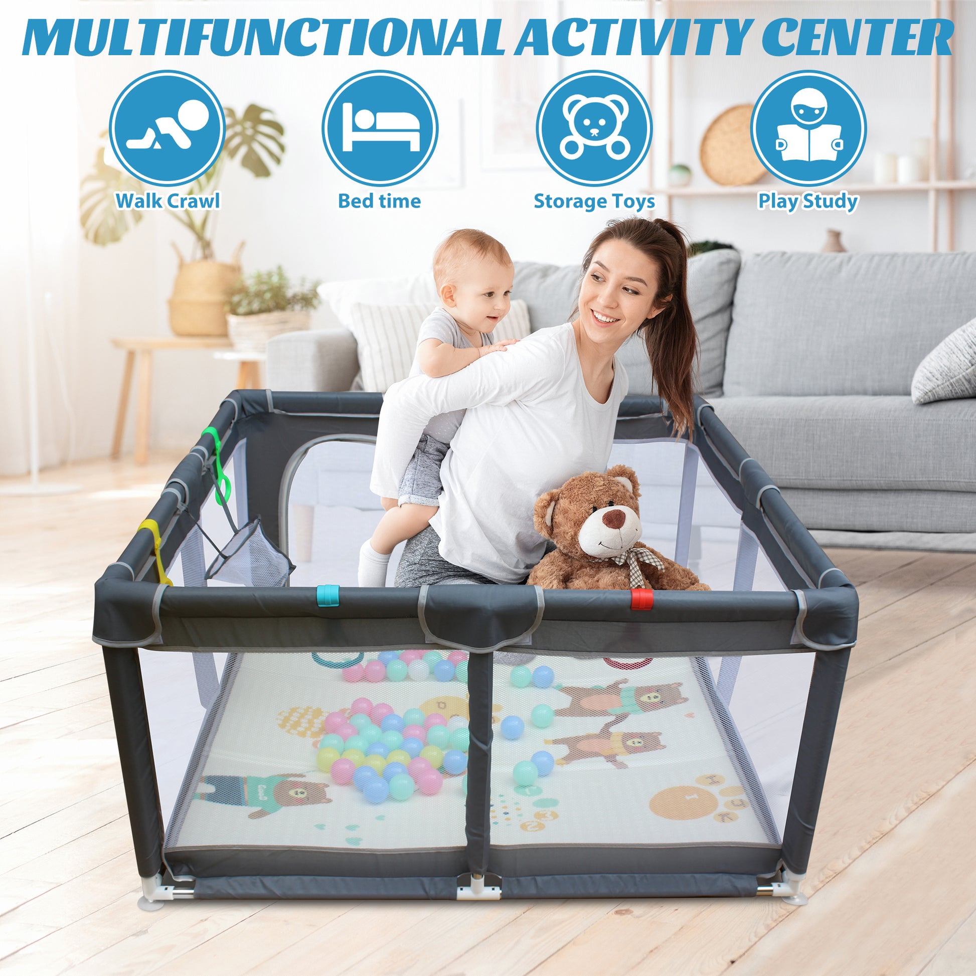- Turn it into a safe playground for babies with the help of a large playpen! Help children explore the sensory world, play, and learn to move on their own and avoid getting lost or exposed to dangerous areas. At the same time, parents can free their hands to do their things.
