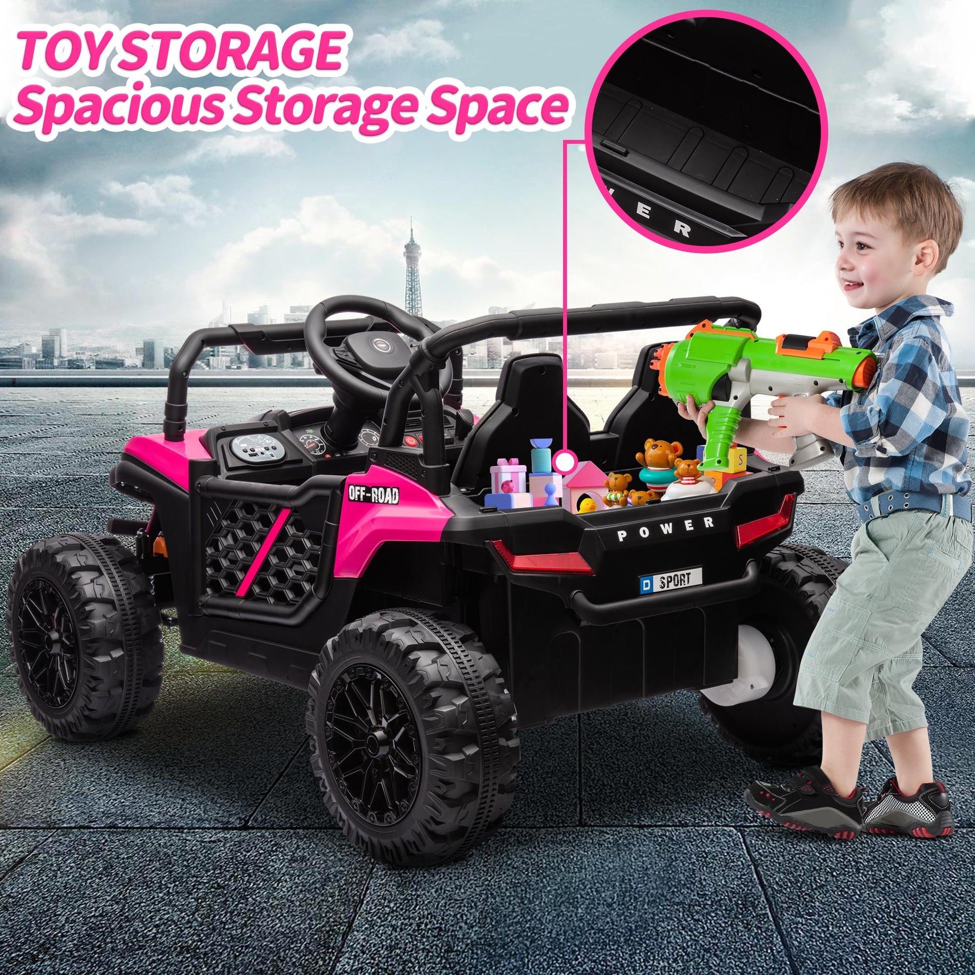 uhomepro Ride on Truck Car,12 V Powered Ride Toys for Kids with Remote Control Spring Suspension, LED Lights, MP3 Player, Electric Vehicles for Boys and Girls Gifts, Pink