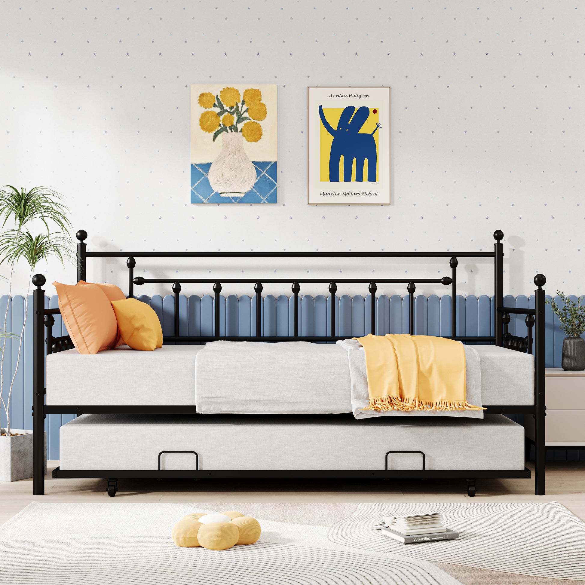 UHOMEPRO Victorian-style Metal Daybed with Trundle Bed - Extremely popular in bedrooms and guestrooms.